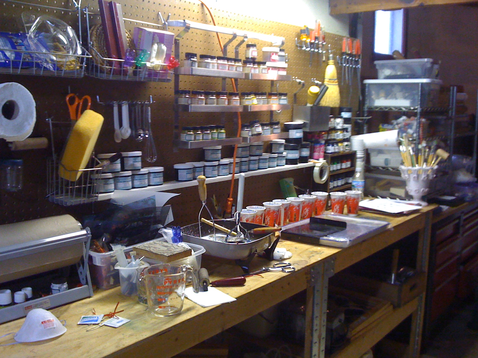 | Tools for soy batik, I applied the batik wax a few days earlier. |