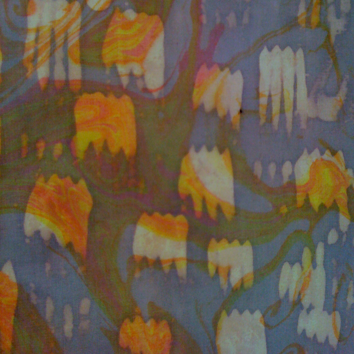 | I used a layering method, placing the fabrics in a meat tray and adding fabric and dye going from one end of the color gradation to the other. I started with blue on the bottom and worked up to rust. |