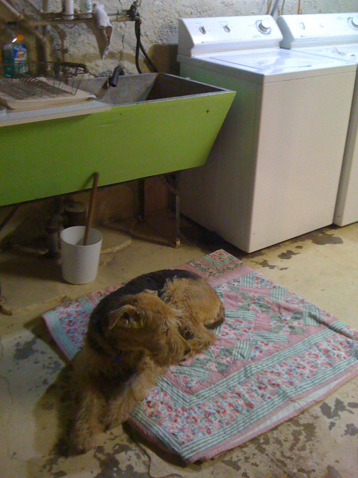 | Of course, my constant companion needs a place of his own to hang out with me while I work. |