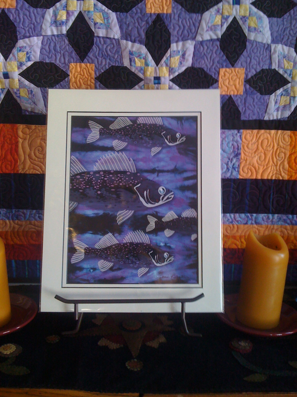 Below is one of the prints that didn't sell. I am rather pleased because it looks pretty nice in the dining room in front of my 'Forget Me Not' quilt. :~)