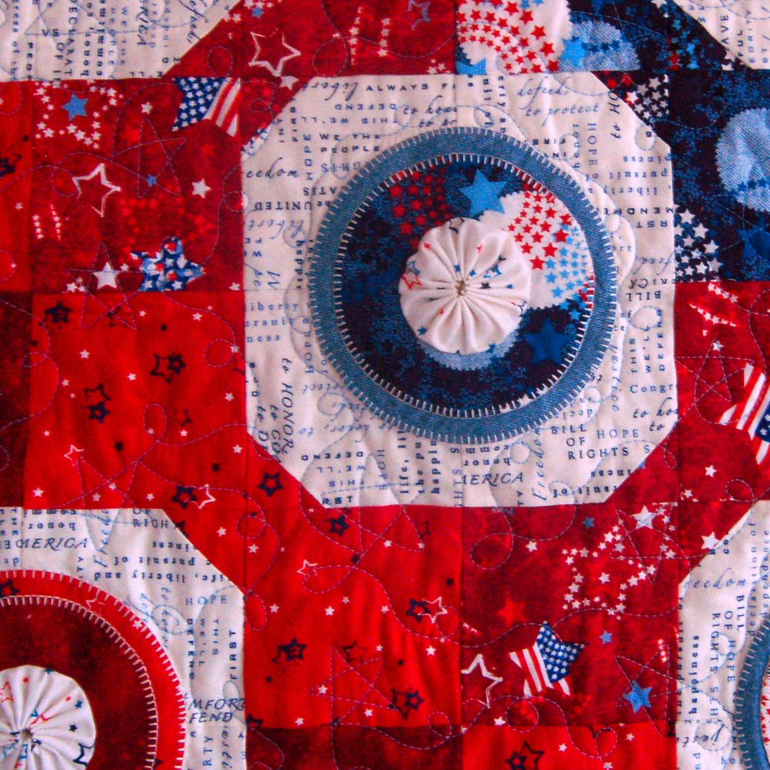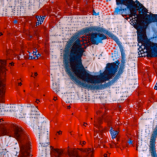 | Close up of - Scrap-bags™ Buttons Bows & Yo-Yo's Quilt Pattern in American Valor Fabrics |