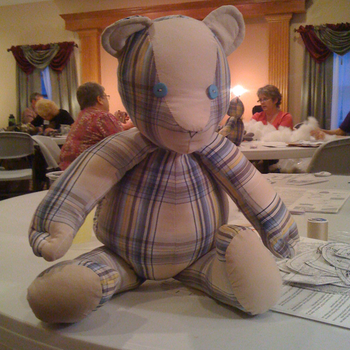 One of our local funeral homes has a "memory bear" program. Anyone who has lost a loved one can bring in an article of clothing from the deceased to be made into a bear. I was invited to sew with this group last evening. It's quite a touching program and I felt honored to participate.